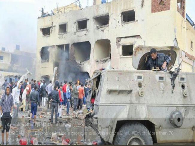 At least 155 people now thought to have died in bomb and gun attack on mosque in #Egypt's North Sinai. pic.twitter.com/tOyyOea7SW
