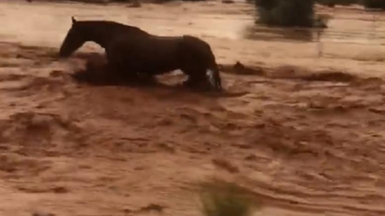 Στο βίντεο που ανέβασε στο Facebook ο Θεόδωρος Κάναβος, φαίνεται ένα άλογο να προσπαθεί να σωθεί από τα ορμητικά νερά. Το άλογο κατάφερε και απεγλωβίστηκε από τον ορμητικό χείμαρρο στη Μάνδρα.